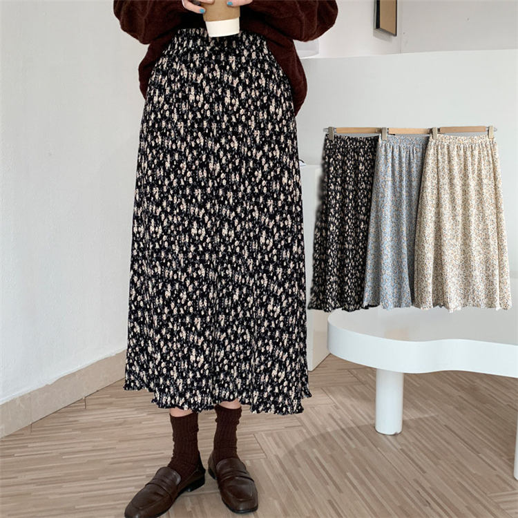 スカート 春 秋 プリーツスカート 花柄 シフォン レーディス ウェストゴム 裏地付き エレガント ロング マキシ きれいめ 二次会 同窓会 お出かけ おしゃれ パーティー 女の子 ファッション 体型