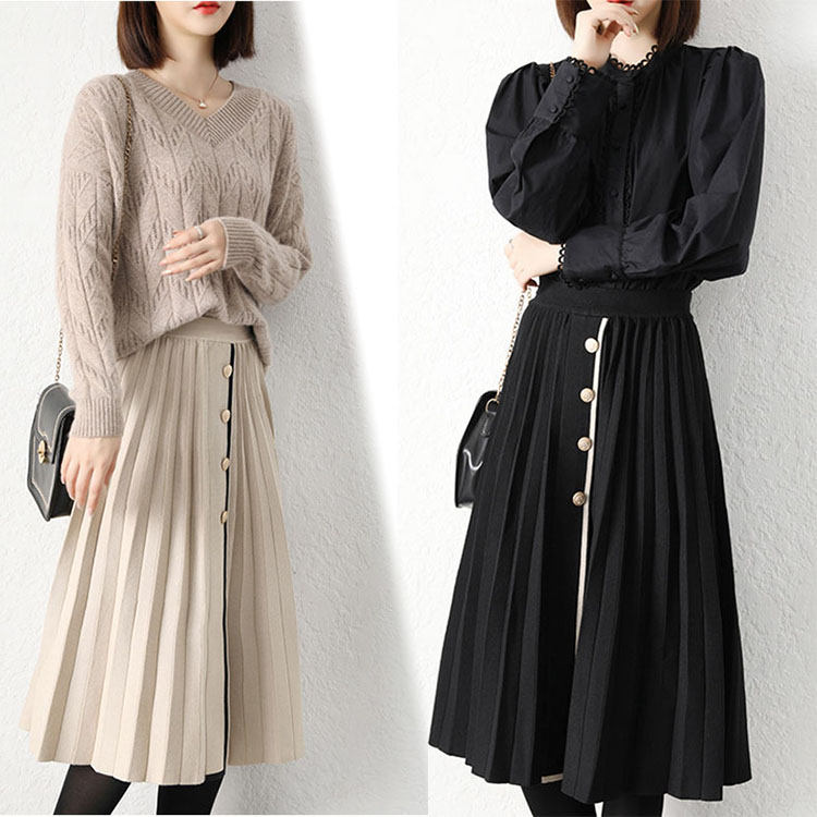 プリーツスカート ニット バイカラー スカート フリー 春 秋 レーディス ウェストゴム ロング マキシ きれいめ 同窓会 大人 きれいめ お出かけ おしゃれ パーティー 女の子 ファッション BQ-