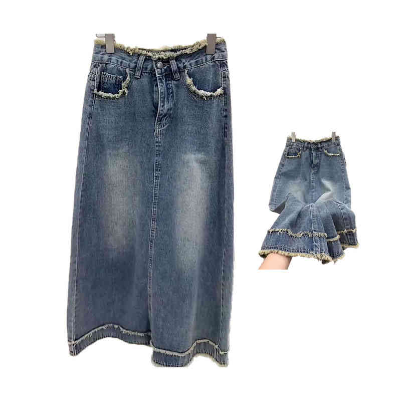 デニム ハイウエスト カジュアルスカート アウター ロングスカート 春夏秋 デニム スカート プリンジ付き ボトムス ライン スカート
