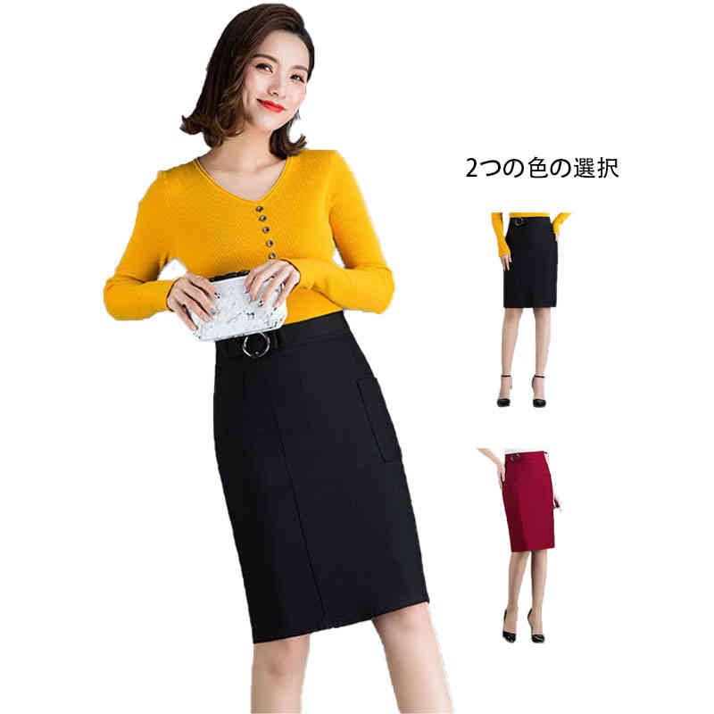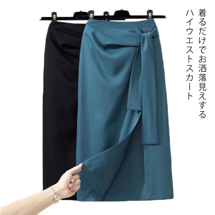スカート レディース タイトスカート ペンシルスカート ひざ丈 ミディア丈 ハイウエスト スカート スリット リボン 細見え 脚長効果 セクシー カジュアル オフィス フォーマル 二次会 お出か