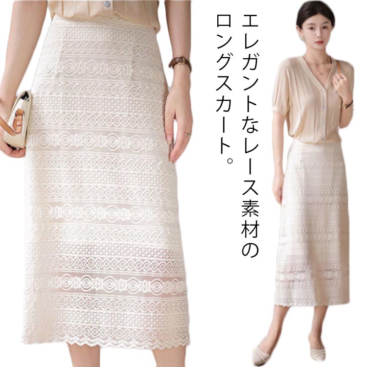 レーススカート ライン ロングスカート ミモレ丈 膝下 ウエストゴム ボトムスレディースファッション ボトムス スカート