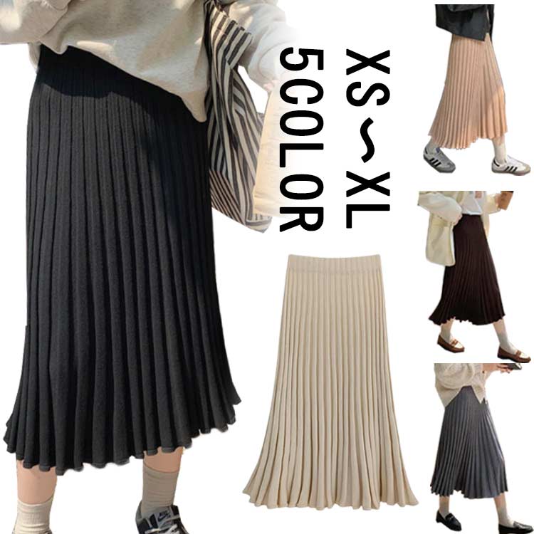 スカート 秋冬 プリーツ風 ニットスカート レディース ボトムス ロング ロングレディースファッション ボトムス スカート