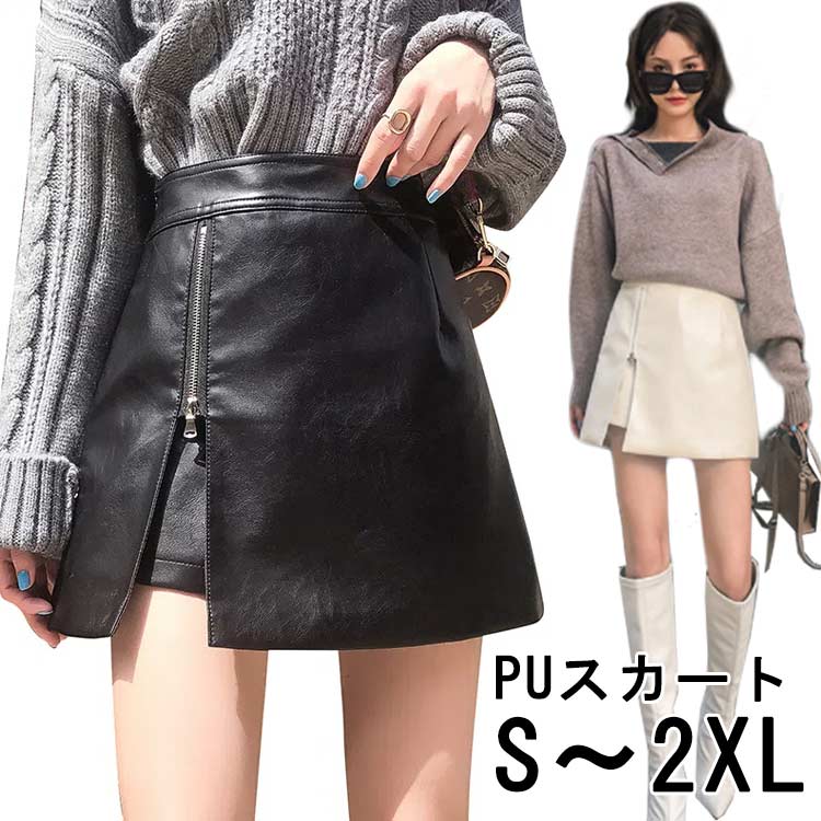 ボトムス タイトスカート レディース セクシー ジップアップ インナーパンツ付き 秋冬 ミニスカート 台形スカート ハイウエスト フェイクレザー