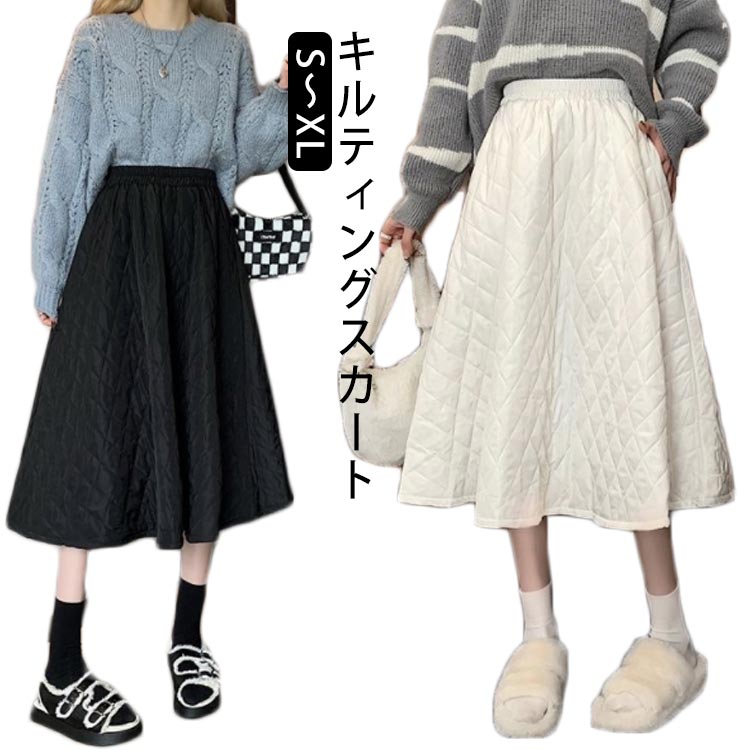 中綿スカート フレアスカート ロング 膝下 ミモレ丈 フレアスカート Aライン フレア キルティング ボトムス