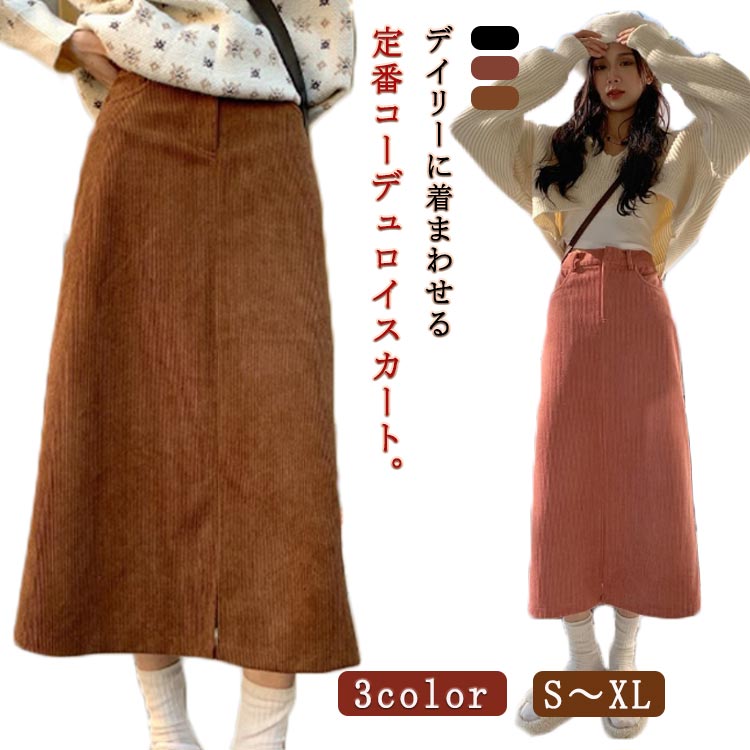 ハイウエスト ミモレ丈 スカート コーデュロイスカート タイトスカート aライン 無地 シンプルレディースファッション ボトムス スカート
