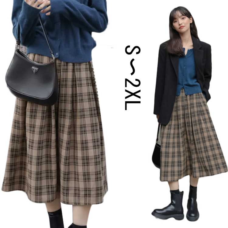 春秋冬 フレアスカート ロング 40代 チェック 大きいサイズ きれいめ 体型カバー レディース 大人可愛い ウエストゴム 秋冬 レディース ロング丈 Aラインスカート 20代 30代 ミモレ丈