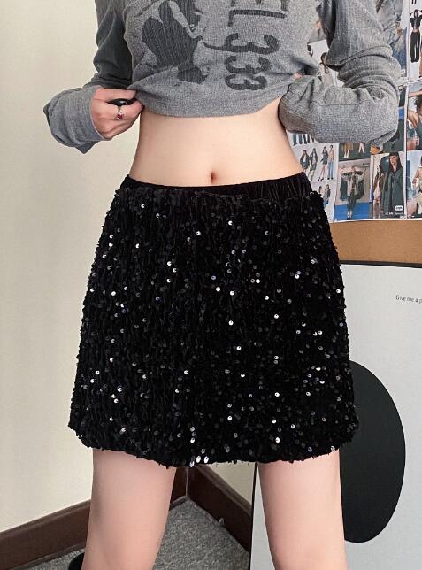 キュロットスカパン2色キラキラ黒ブラックシルバーミニスカミニ膝上ひざ丈ハイウエストダンス衣装ヒップホップHIPHOPレディースガールズストリートセクシーステージ奇抜派手個性的