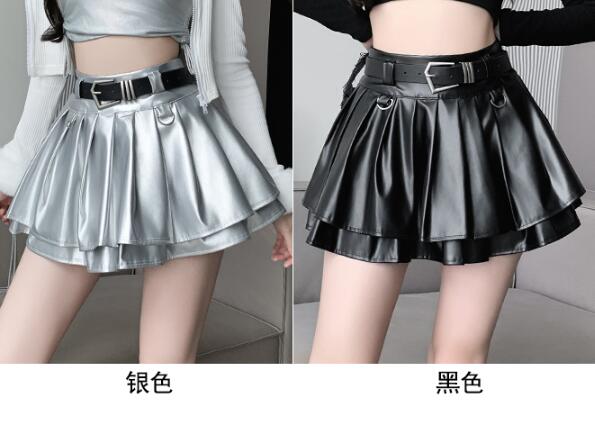 プリーツスカート2色キュロットスカパン無地シンプルハイウエストミニスカミニ膝上ひざ丈ベルトボトムスダンス衣装ヒップホップHIPHOPレディースガールズkpop韓国ストリート個性的奇抜派手