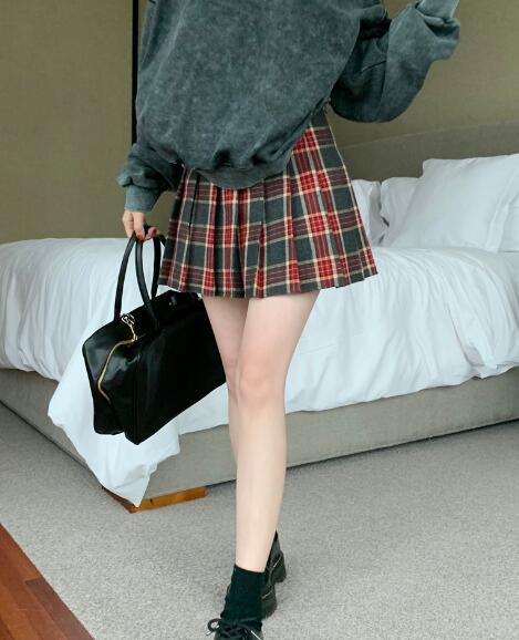 プリーツスカートキュロットスカパンチェック柄シンプルハイウエストミニスカミニ膝上ひざ丈ボトムスダンス衣装ヒップホップHIPHOPレディースガールズkpop韓国ストリート個性的奇抜派手