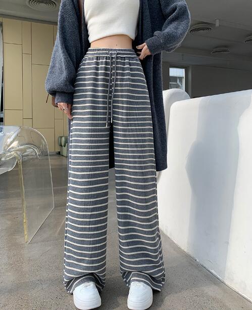 ボーダー柄パンツズボンボトムススウェット ロングワイド太い太め大きいサイズビッグゆったりハイウエストポケットダンス衣装ヒップホップレディースガールズ個性的奇抜