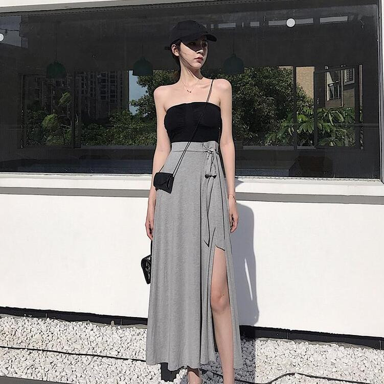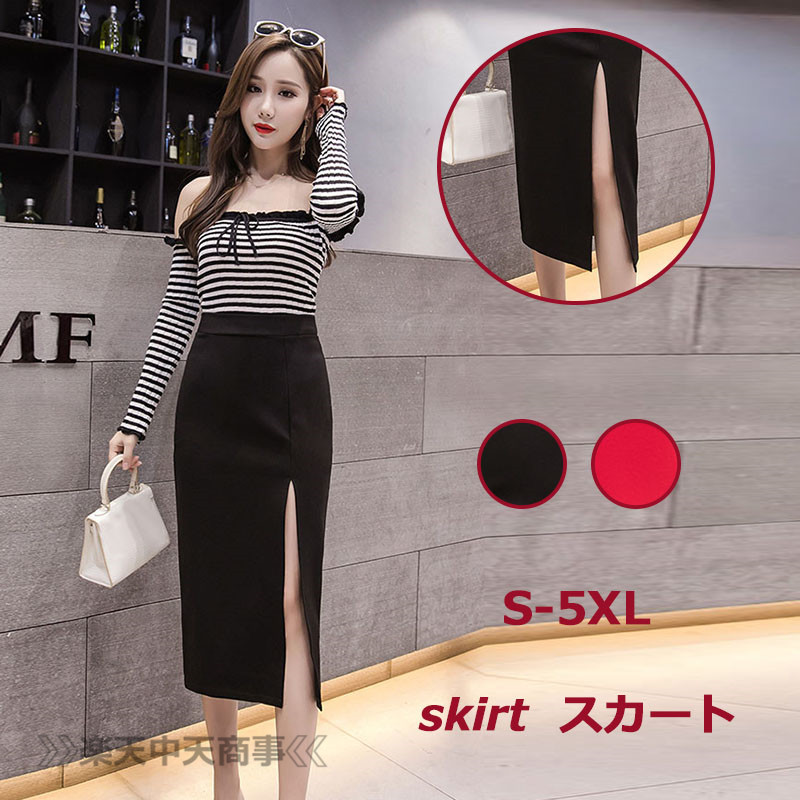 スリット入りスカートマキシスカート美ラインロングスカート膝下丈ボトムス ハイウェスト夏レディースファッション ボトムス スカート
