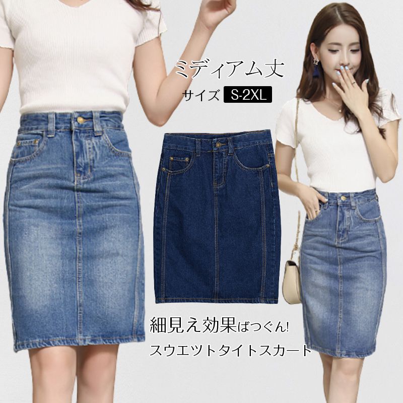 レディースミモレ丈ミディ丈デニムスカートペンシルスカートハイウエストボトムスカジュアルキュート可愛いフェミニンきれいめエレガントセクシー上品