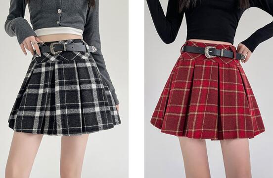 プリーツスカートキュロットスカパンチェック柄レッド赤ブラック黒ハイウエストミニスカミニ膝上ひざ丈ボトムスダンス衣装ヒップホップHIPHOPレディースガールズkpop韓国ストリート個性的奇抜派手