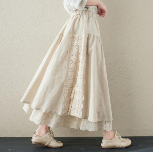 ロングスカート 重ね着スリット レイヤード風 ライン 無地 ボトムス 体型カバー ゆったり リネンスカート 森ガール エスニック