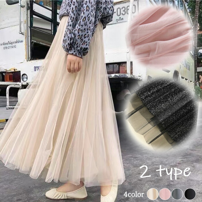 2-24 チュールスカート 2タイプ4カラーから選べる 華やかさを演出 マキシスカート ロングスカート フレアスカート -チュール ポッキリ