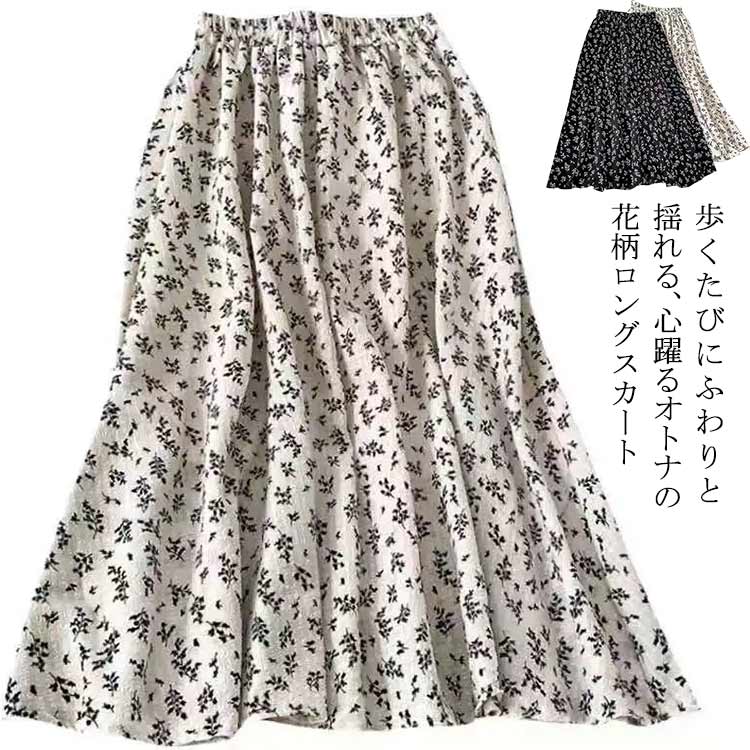 きれいめ ロング丈 花柄ロングスカート フラワー スカート 女子会 デート ブラック ホワイト 大人女子向け