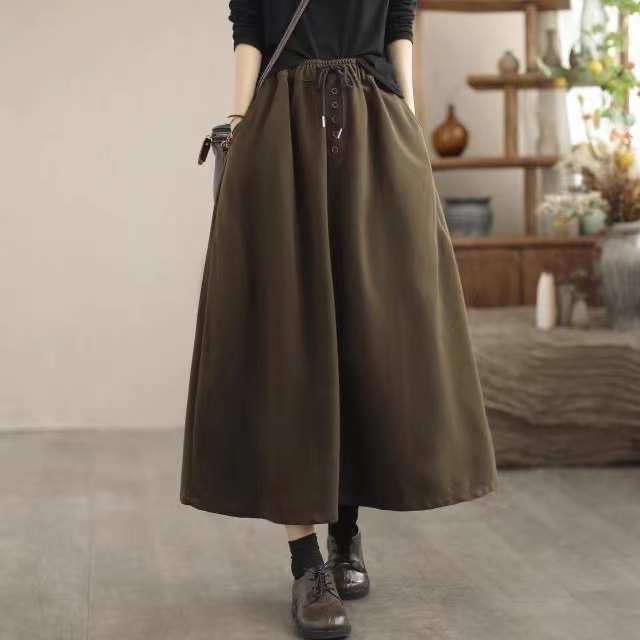 コーデュロイスカート ロング Aラインスカート ナチュラル 春秋冬スカート 無地 フレアスカート 森ガール系 シンプル ゆったり ボトムス