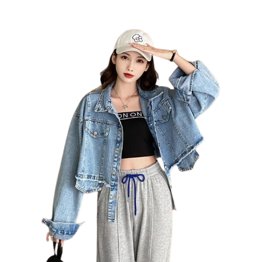 ショート丈ジージャンデニムジャケット長袖ジャンボタンポケットビッグ大きいサイズダンス衣装ヒップホップレディースガールズ大人ストリートアウタージャンパー韓国