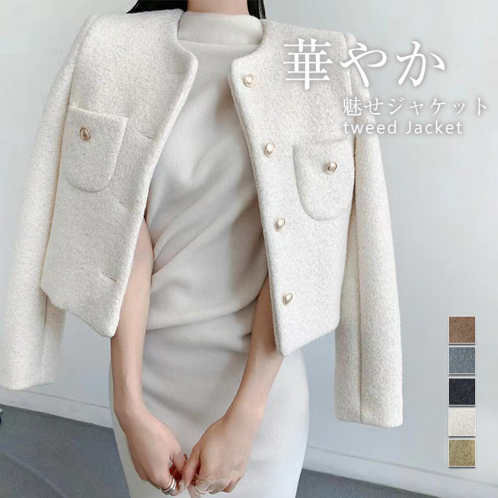 ジャケット レディース ツイード ノーカラー アウター 羽織り ツイードジャケット おしゃれ きれいめ セレモニー オフィス フォーマル 卒業式 卒園式 入学式 入園式 謝恩会 パーティー 結婚式 マ
