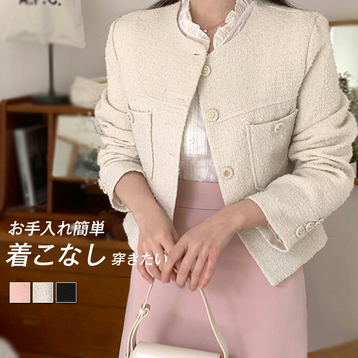ツイード ジャケット レディース アウター 羽織り ツイードジャケット ノーカラー おしゃれ きれいめ セレモニー オフィス フォーマル 卒業式 卒園式 入学式 入園式 謝恩会 パーティー 結婚式 マ
