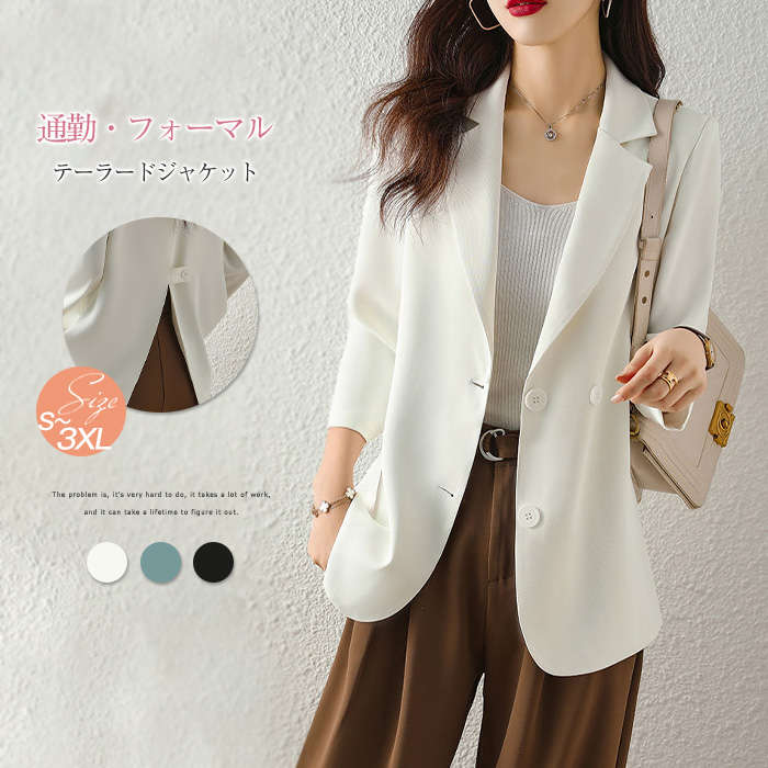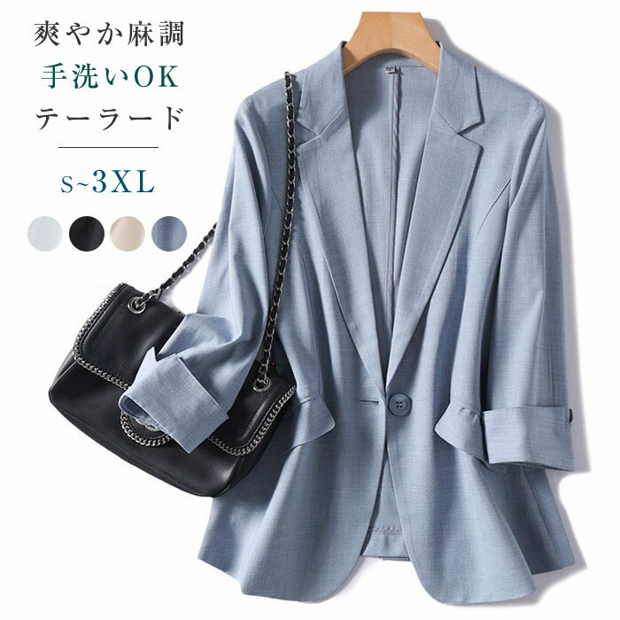テーラードジャケット レディース 七分袖 サマージャケット シンプル OL オフィス カジュアル 上品 大きサイズ ゆったり ジャケット 薄手 春 夏 秋 アウター キレイめ