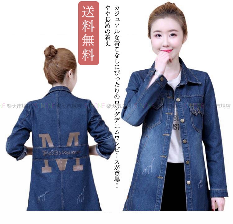 デニムジャケット レディース トレンチコート スプリングコート ゆったり 大きいサイズ おしゃれ カジュアル 春物 秋 秋服 新作 長袖 ミディアム丈 デニムコート