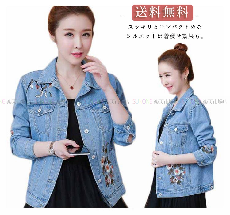 デニムジャケット レディース 刺繍 ジャン おしゃれ アウター 羽織り大きいサイズ ブルゾン ジャケット カジュアル きれいめ おしゃれ かわいい 秋 冬
