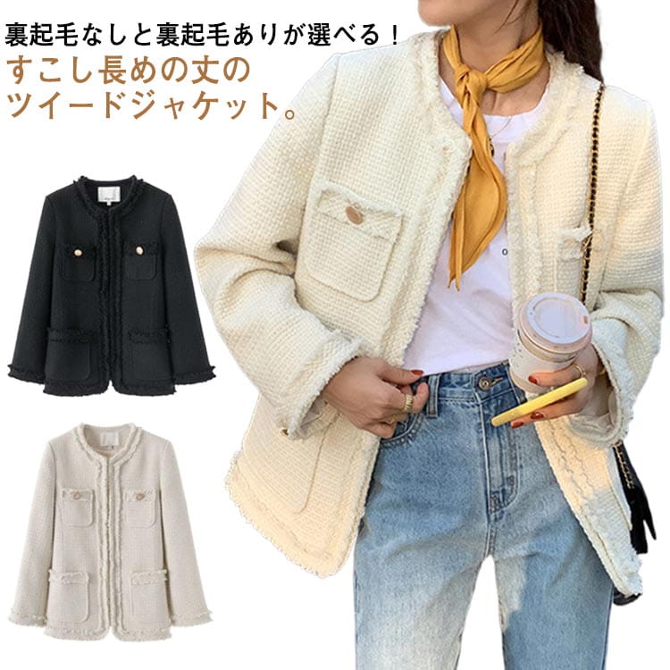 ジャケット レディース ツイードジャケット フリンジ ノーカラージャケット ブランドネック アウター ショート エレガント オフィス ベージュ 韓国ファッション
