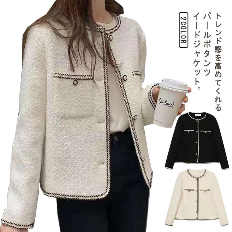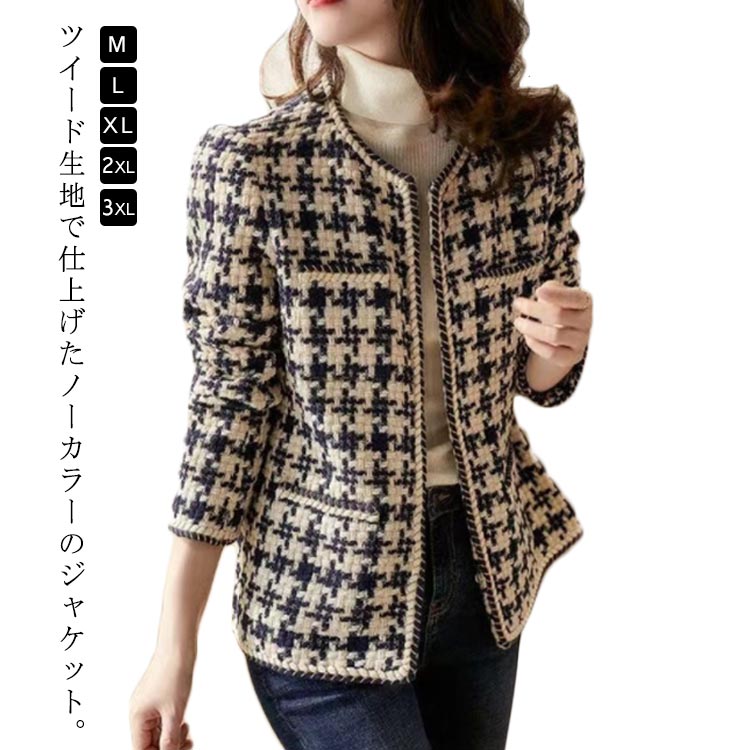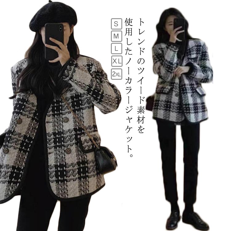 ジャケット ノーカラー ジャケット ツイード ツイードジャケット 羽織り アウター 韓国 おしゃれ ボタンなし