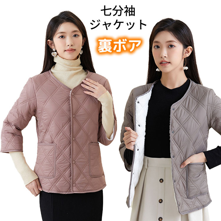 保温効果と便利さを両立 七分袖 裏ボアジャケット インナージャケットレディースファッション コート ジャケット