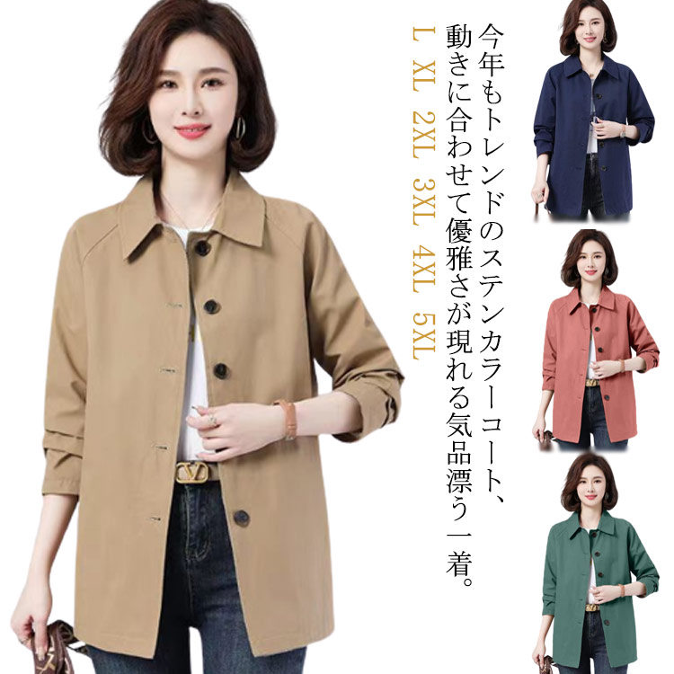 ステンカラーコート 秋 大きいサイズ 春 アウター 体型カバーレディースファッション コート ジャケット