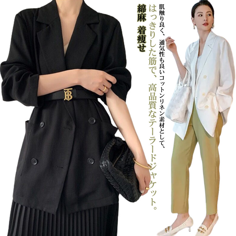 テーラードジャケット レディース リネンコットン スーツジャケット ロング丈 大きいサイズ ひんやり