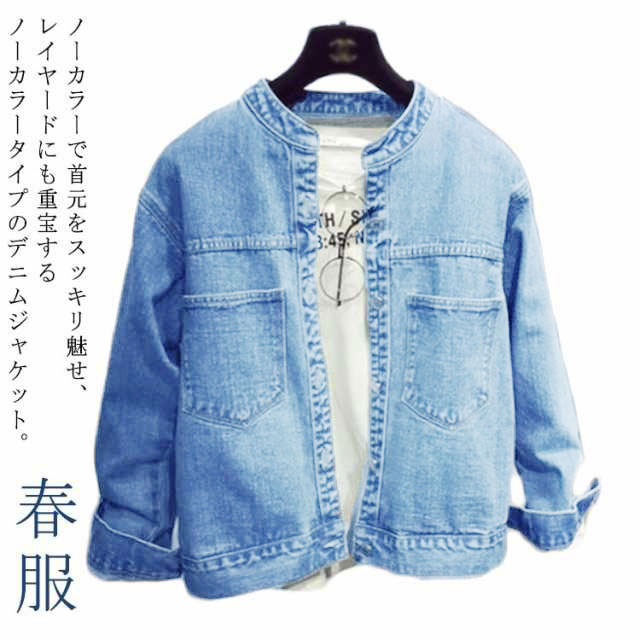 デニムジャケット レディース ジャン 長袖 立ち襟 ノーカラー デニムコート ショート丈 春 ノーカラージャケット カジュアル アウター 春秋 きれいめ おしゃれ