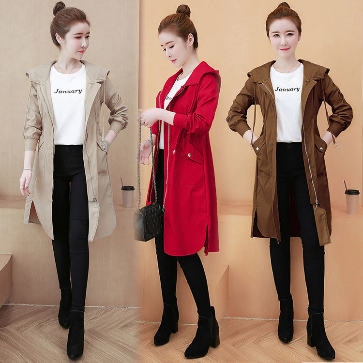コート レデイース トップス 膝丈 おしゃれ ダスターコート 可愛い フード付き カジュアル お出かけ 春秋 長袖 体型カバー 同窓会 普段着 着やせ ベージュ レッド キャメル -270