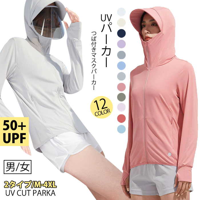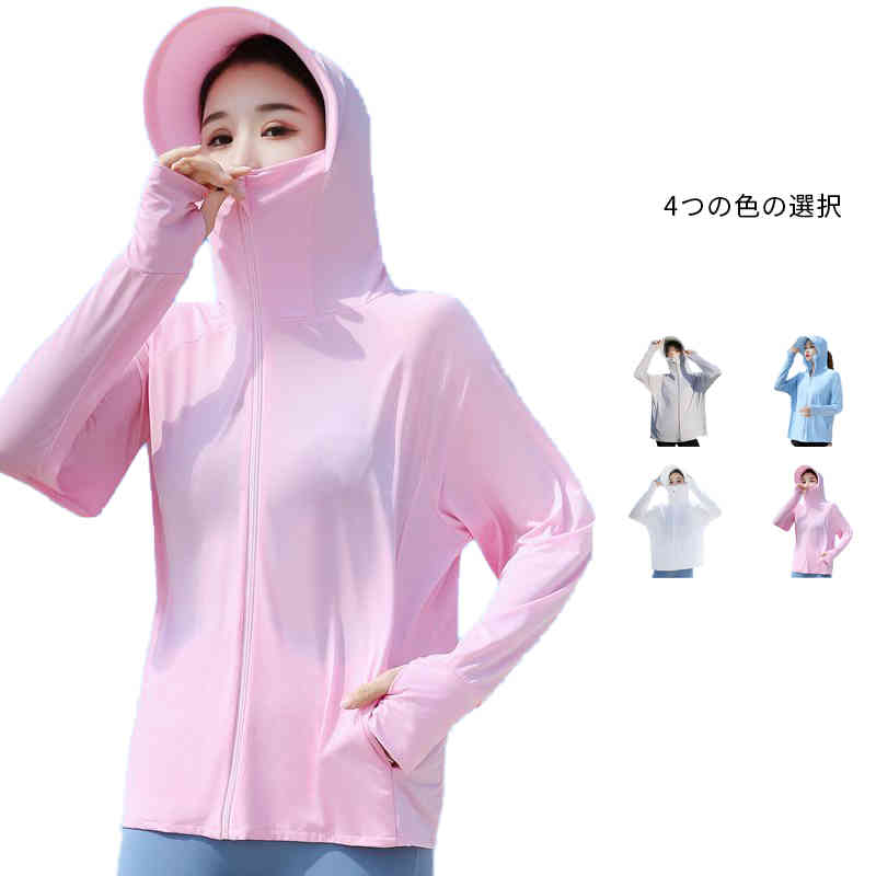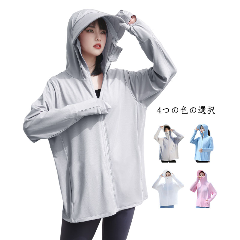 指穴 UVカットパーカー サンバイザー マウンテンパーカー UPF50+ フード付き 長袖パーカー uvカット 360度紫外線対策