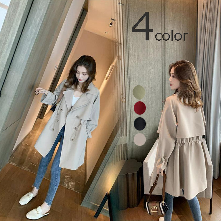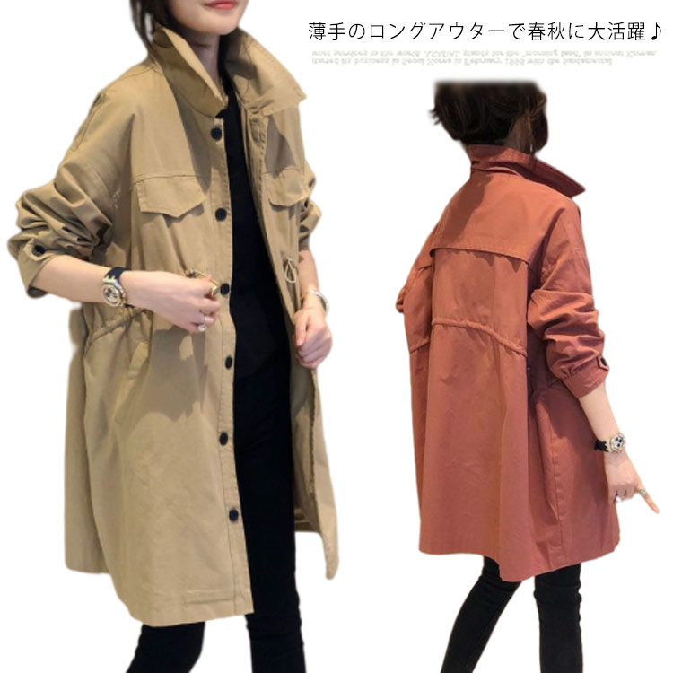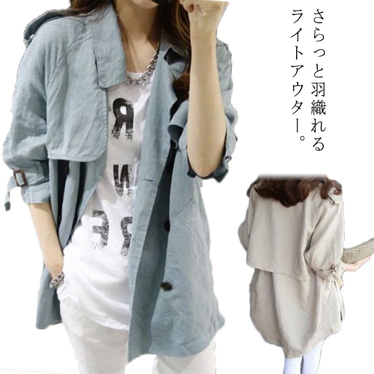 トレンチコート レディース スプリングコート 春秋 長袖 折り襟 ライトアウター ジャケット カジュアル 大きいサイズ 体型カバー 春コート 秋コート アウター 無地