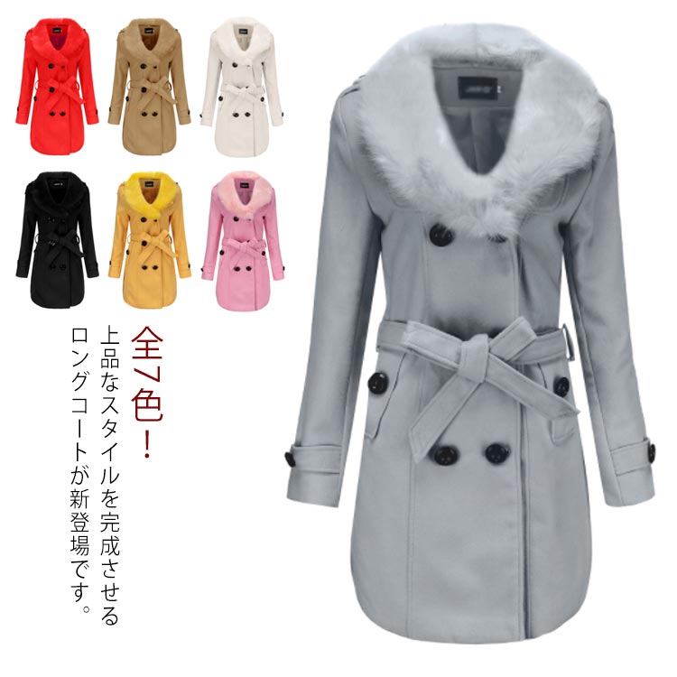 ボア襟 アウター レディース ロング丈 ベルト付き オシャレ 大きいサイズ ダブルボダン フェミニン トレンチコート ダブルボダン 通勤 着痩せ