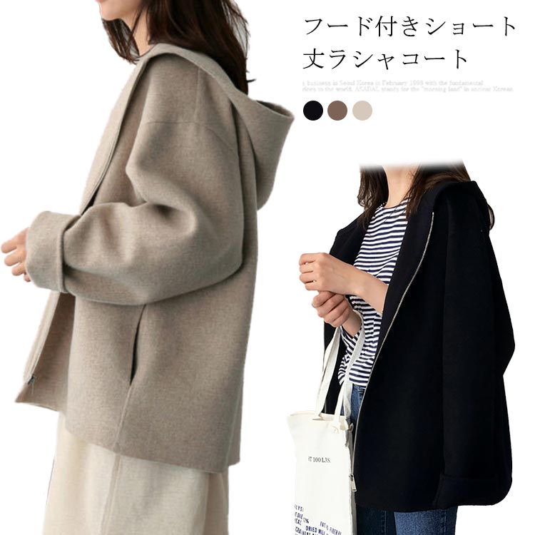 カーディガン フード付き レディース 羽織 ショート丈 アウター ラシャコート トップス 無地 パーカー シンプル デイリー オーバーコート ショートコート 長袖