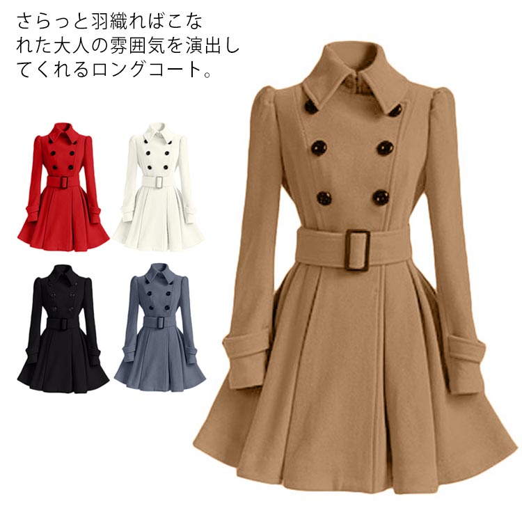 ロング丈 Aライン フレア レディース フレア オシャレ ダブルボダン フェミニン ロングコート 通勤 着痩せ 大きいサイズ ベルト付き