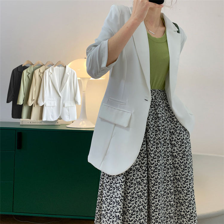 コート スーツ レデイース 春秋 五分袖 トップス おしゃれ 可愛い カジュアル お出かけ ショート丈 体型カバー 同窓会 普段着 着やせ 大きいサイズ 無地 -263
