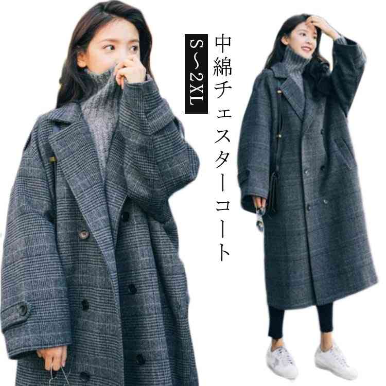 冬服 秋コート チェスター コート アウター 秋冬物 ロング 冬物 冬グレンチェック コート 中綿コート キルティング レディース