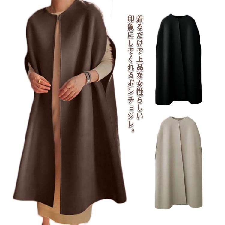 ウール混 ノースリーブ ポンチョコート レディース コート ポンチョ風ジレ 袖なし 無地 ジレ 丸首 ポンチョ 羽織る キレイめ フェミニン ロングジレ