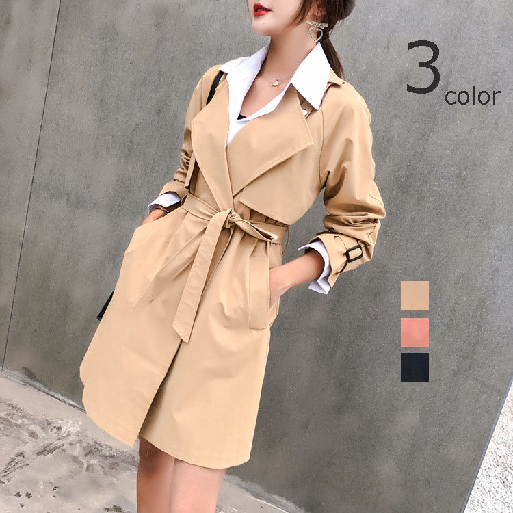 ダスターコート トレンチコート レデイース 可愛い カジュアル お出かけ 体型カバー 同窓会 普段着 着やせ ミディアム トップス コート 春秋 長袖おしゃれ 無地 ブラック ベージュ waitao-