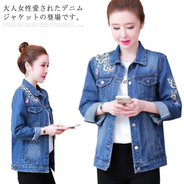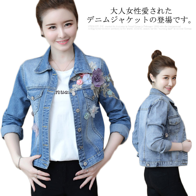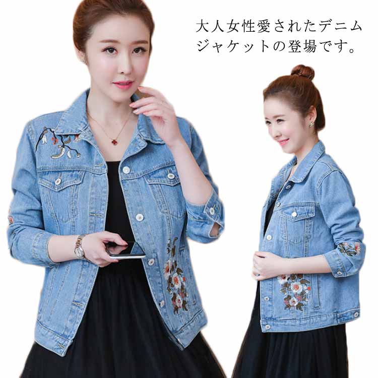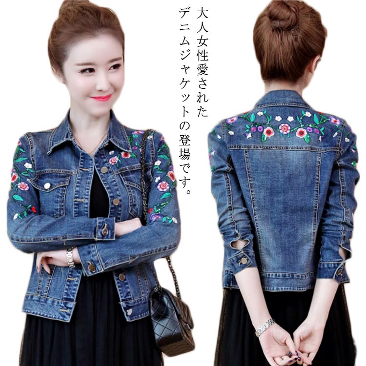 デニムジャケット レディース ジャン 刺繍ジャケット ショート丈 春服 春物 秋服 秋物 おしゃれ 可愛い 花柄 刺繍 アウター