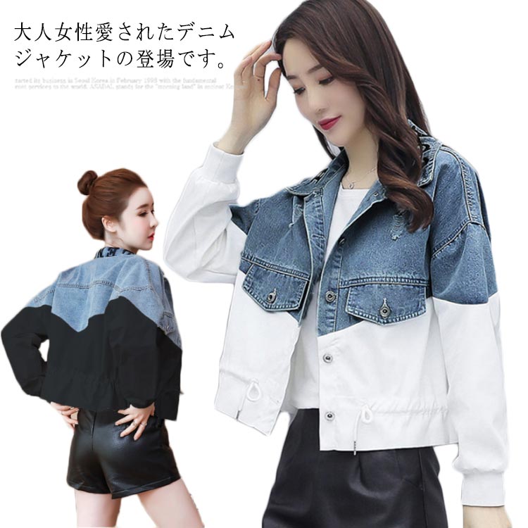 秋アウター デニムジャケット 切り替え デニムアウター 裾紐付き シャツジャケット 春服 春物 秋服 秋物 おしゃれ 可愛い