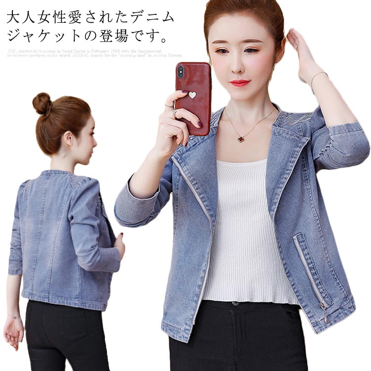 デニムジャケット レディース ショート丈ジャケット トレンド 長袖 着やせ 春服 秋服 春物 秋物 ノーカラー