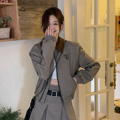 全2色 ジャケット コート 長袖 切り替え バイカラー 配色 体型カバー ヴィンテージ風 レトロ調 原宿系ファッション 韓国風 ダンス 衣装 ダンサー ヒップホップ 個性 奇抜 かわいい