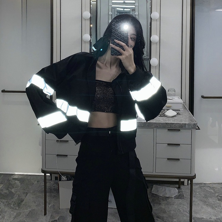 ウィンドブレーカー ショート丈 長袖 切り替え 体型カバー 無地 原宿系ファッション 韓国風ダンス 衣装 ヒップホップ 個性 奇抜 かわいい 青文字系 アウター コート トップス レディ