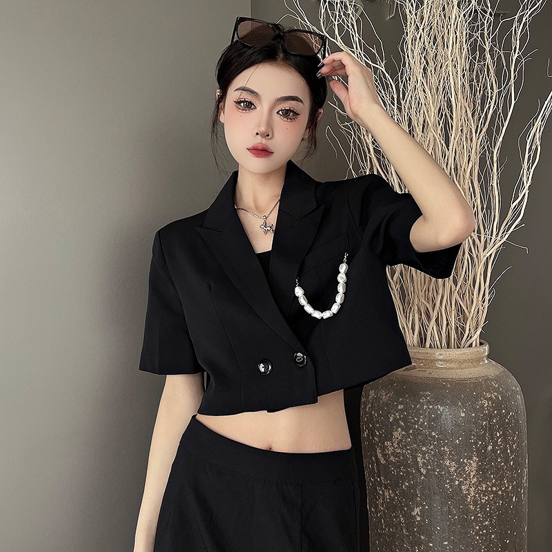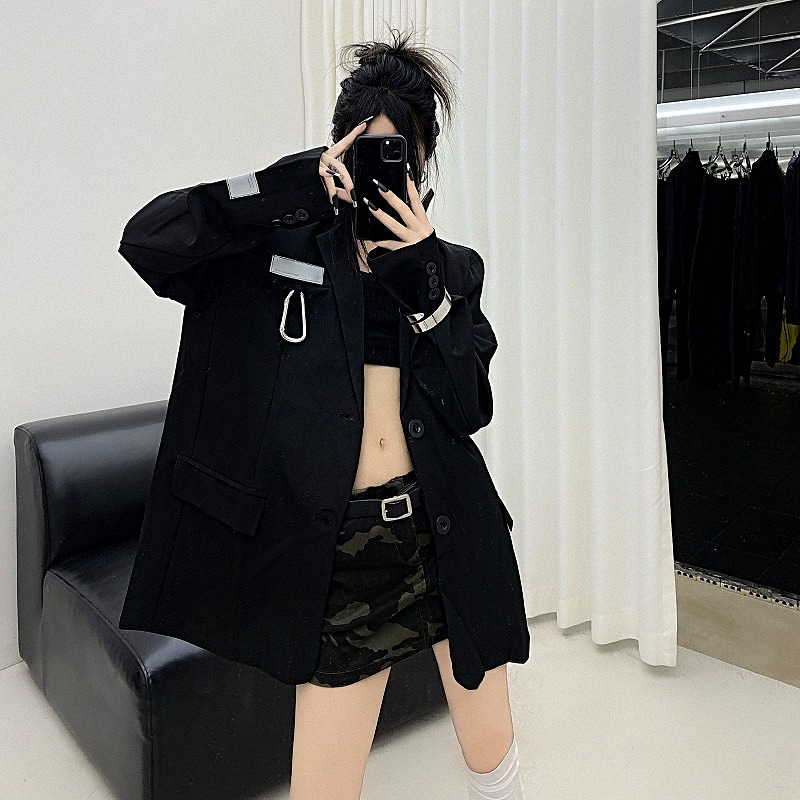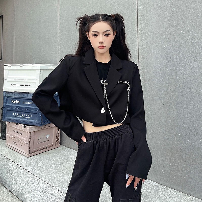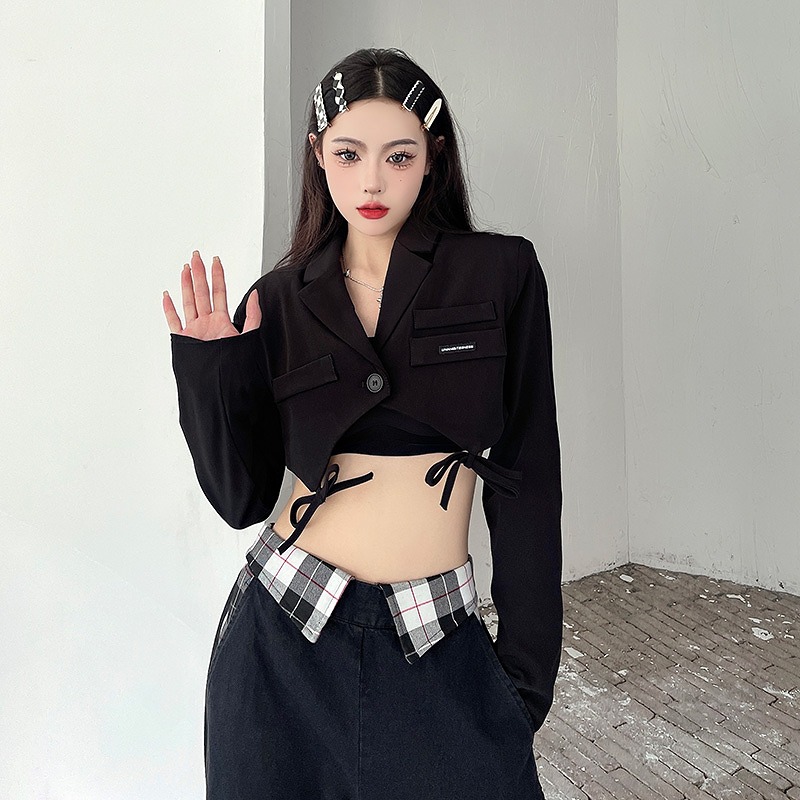 ジャケット ショート丈 長袖 切り替え 体型カバー 無地 原宿系ファッション 韓国風 ダンス衣装 カワ 個性 奇抜 かわいい 青文字系 アウター コート トップス レディース 女