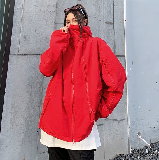 ウィンドブレーカー 長袖 切り替え 体型カバー 大きいサイズあり 原宿系ファッション 韓国風ダンス 衣装 ヒップホップ HIPHOP 個性 奇抜 かわいい 青文字系 アウター コート トップス レディ